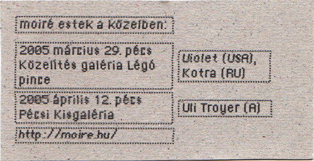 2005. március 29. 19h- Közelítés Galéria, Légó Pince, Pécs Moiré est